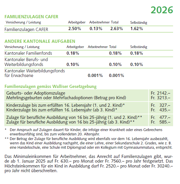 - Im Kanton Wallis wohnhafte Arbeitgeber und Selbständigerwerbende, die der AHV-Ausgleichskasse FER VALAIS 106.7 angeschlossen sind, ausser den Berufsbranchen die mit der CACI oder der CAFIA verbunden sind.